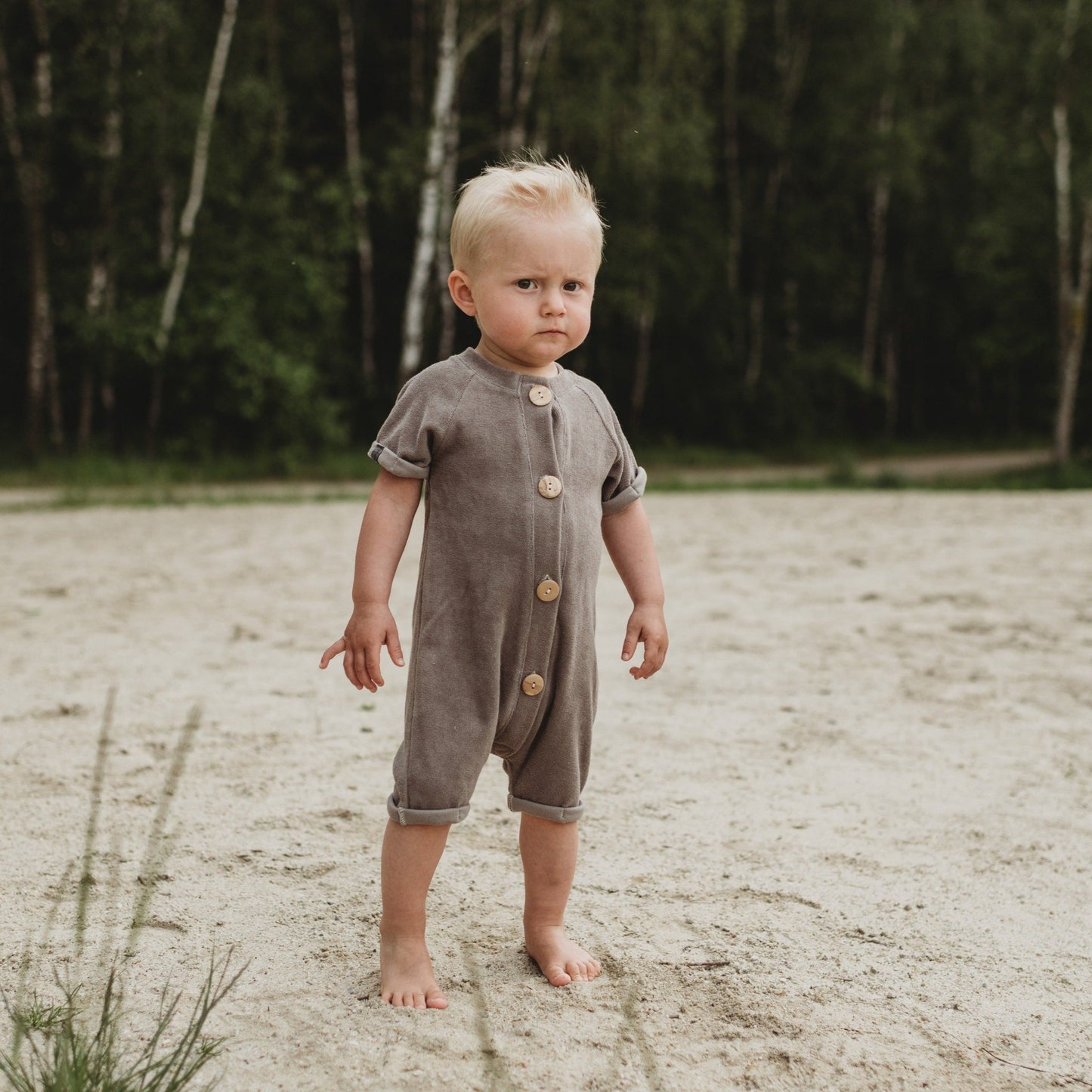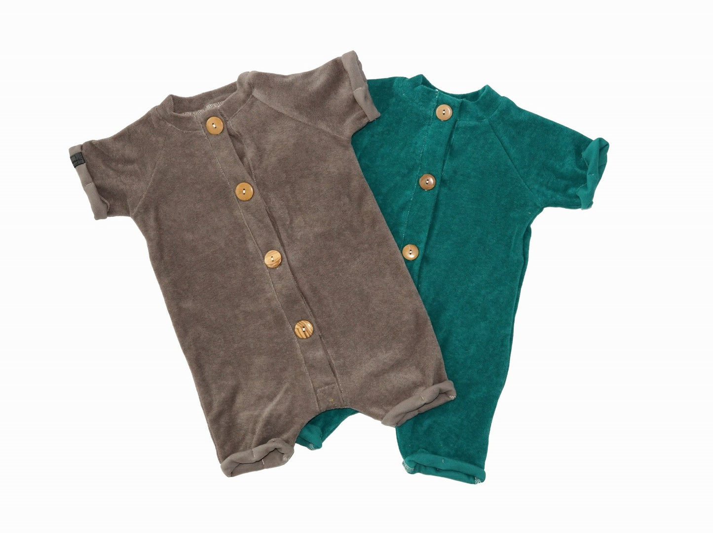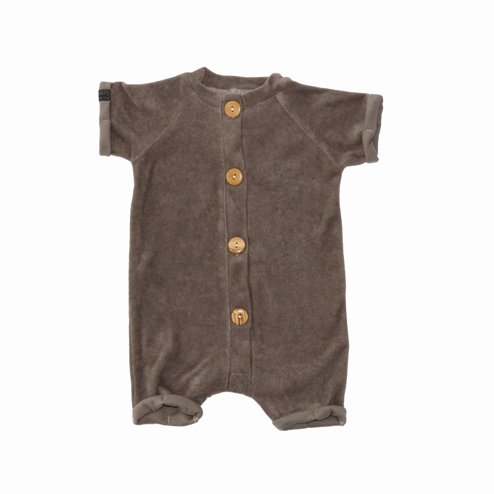Krátký overal s olivovými knoflíčky - na spaní, na doma i na ven