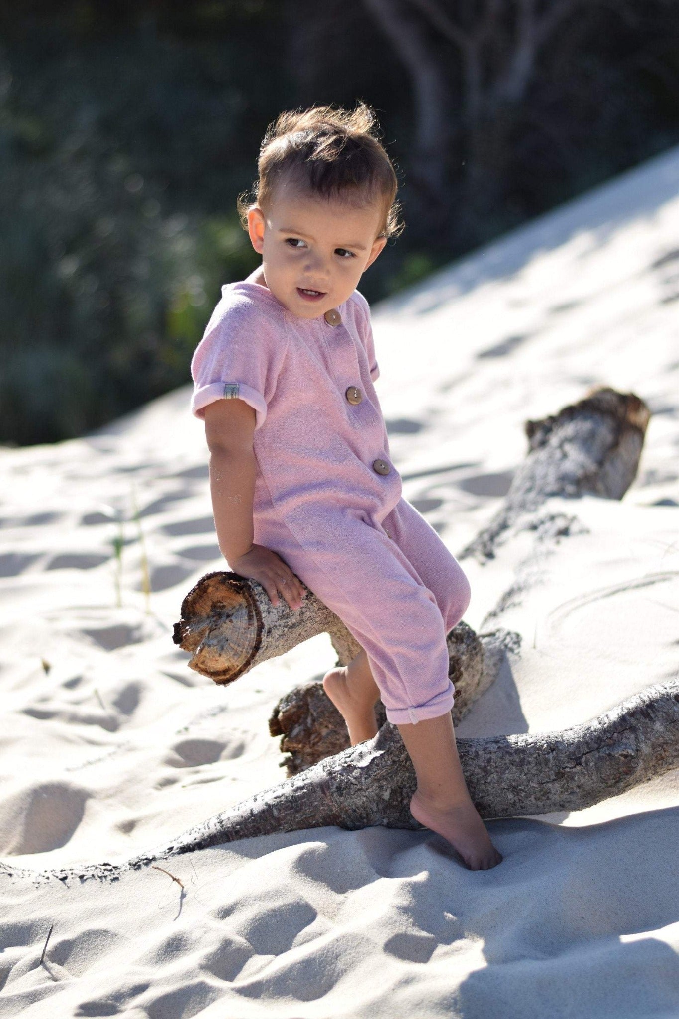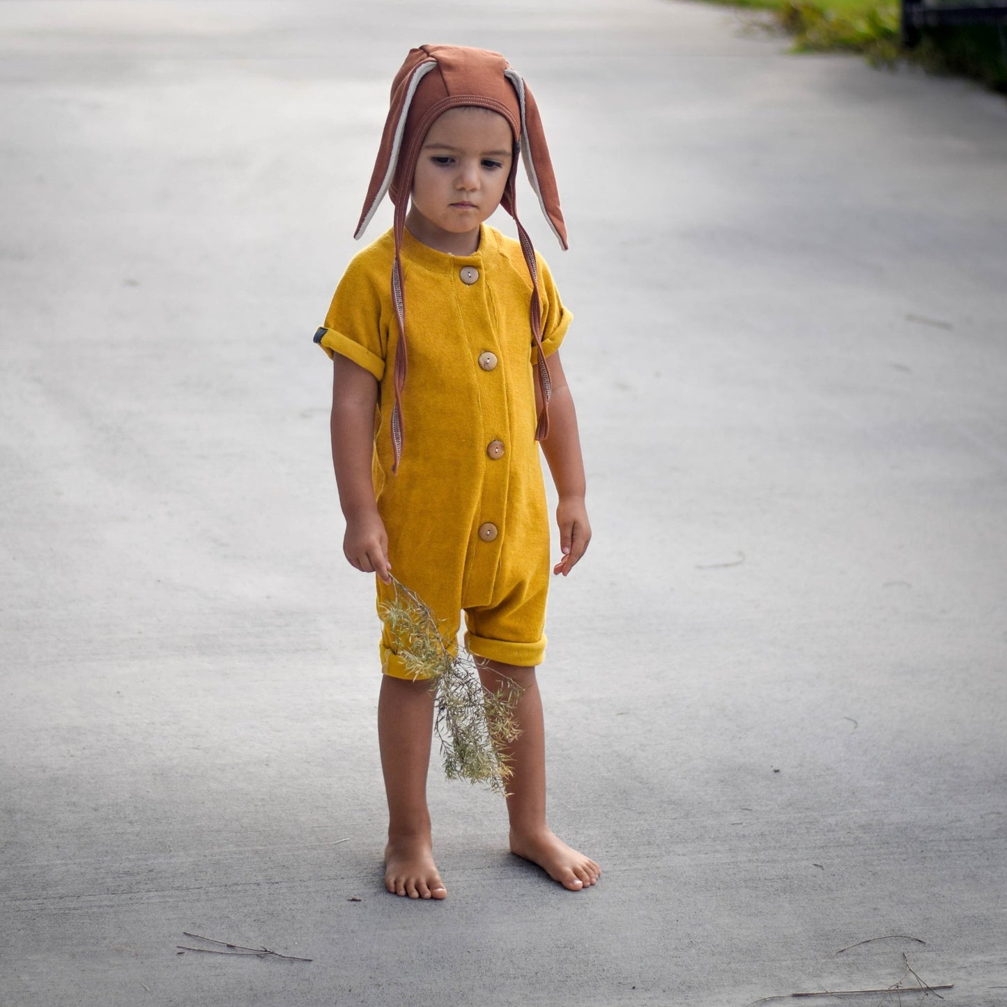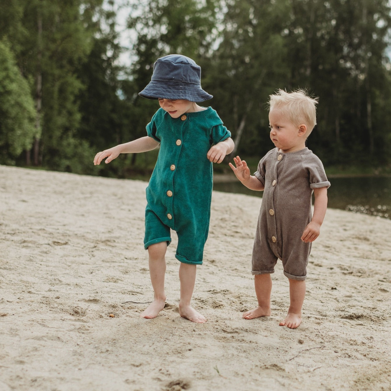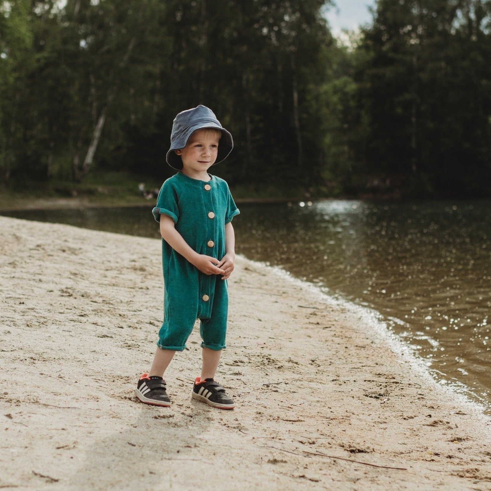 Krátký overal s olivovými knoflíčky - na spaní, na doma i na ven